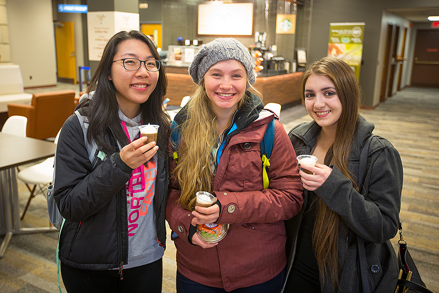 The café, which opened for the start of the spring semester on the first floor of Abbott, is Campus Dining & Shops’ first location inside a university library. It serves freshly prepared sandwiches, snacks and salads, as well as fresh baked goods from CDS’ campus bakery. It also features the Starbucks We Proudly Serve beverage program, with fresh-brewed coffee, iced tea and coffee, Frappuccino and expresso-based beverages.