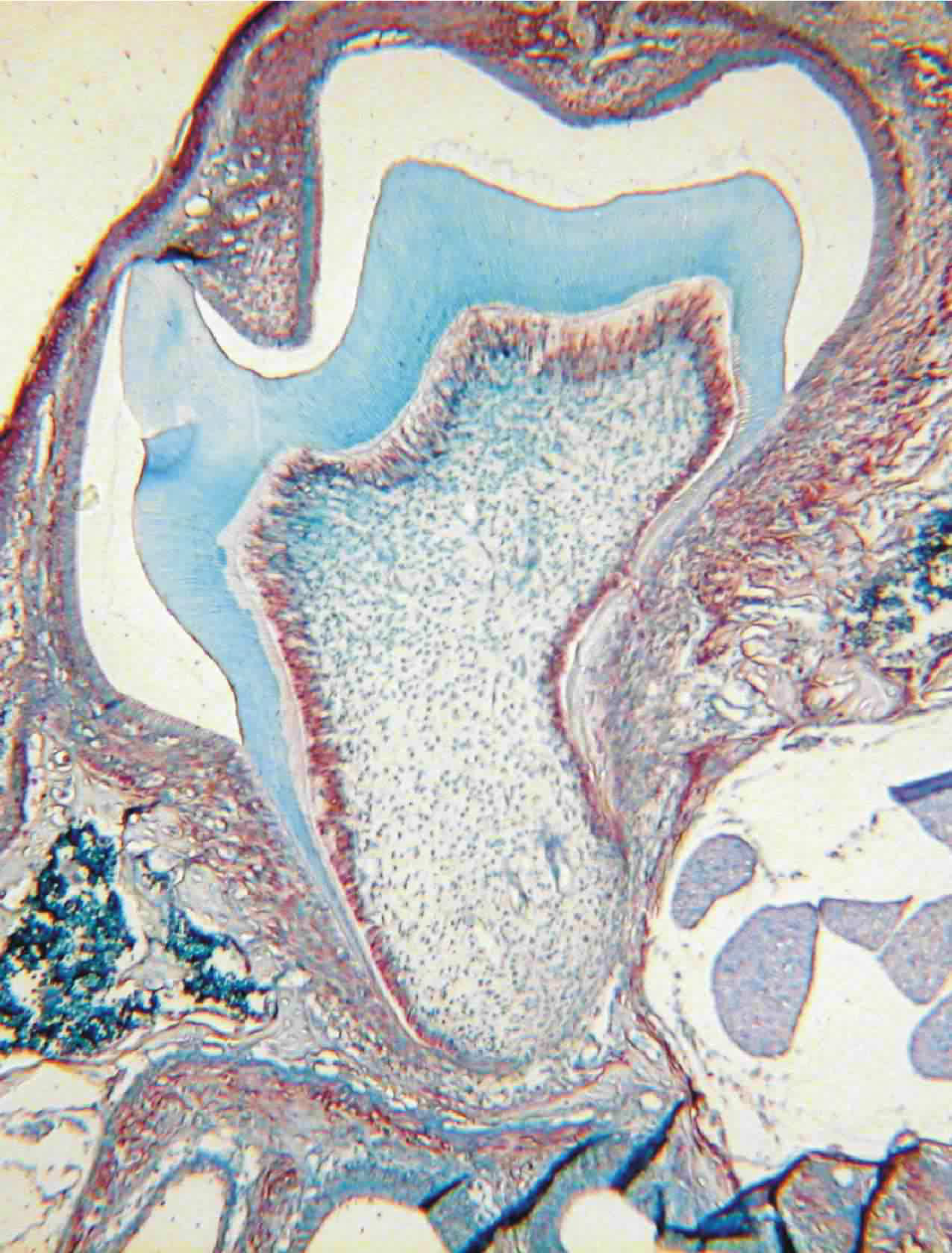 Further investigation showed that while the tooth crowns (the visible portion of teeth) of these genetically altered mice had developed normally, they lacked the roots that embed teeth in the surrounding bone and provide the stability necessary for chewing.