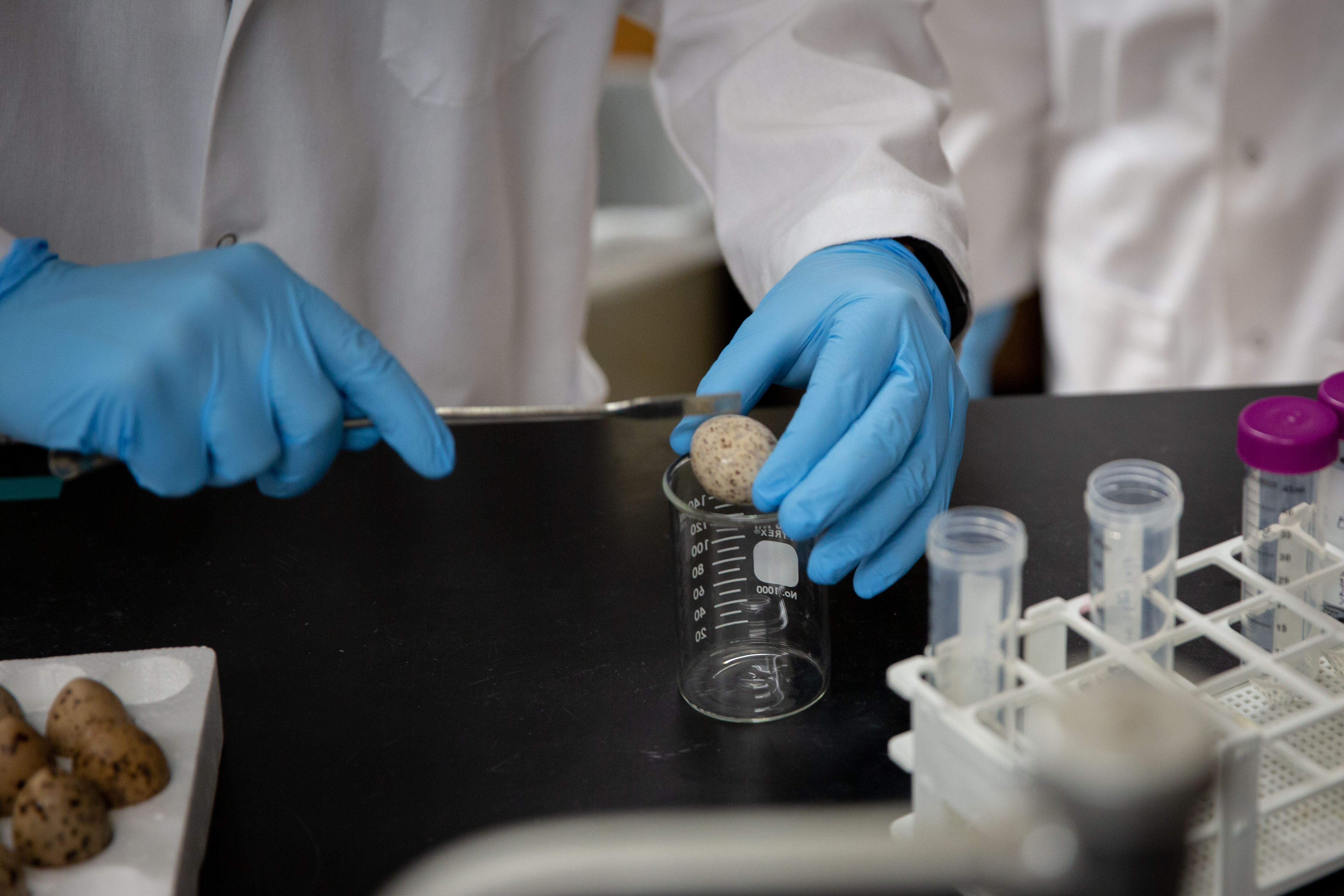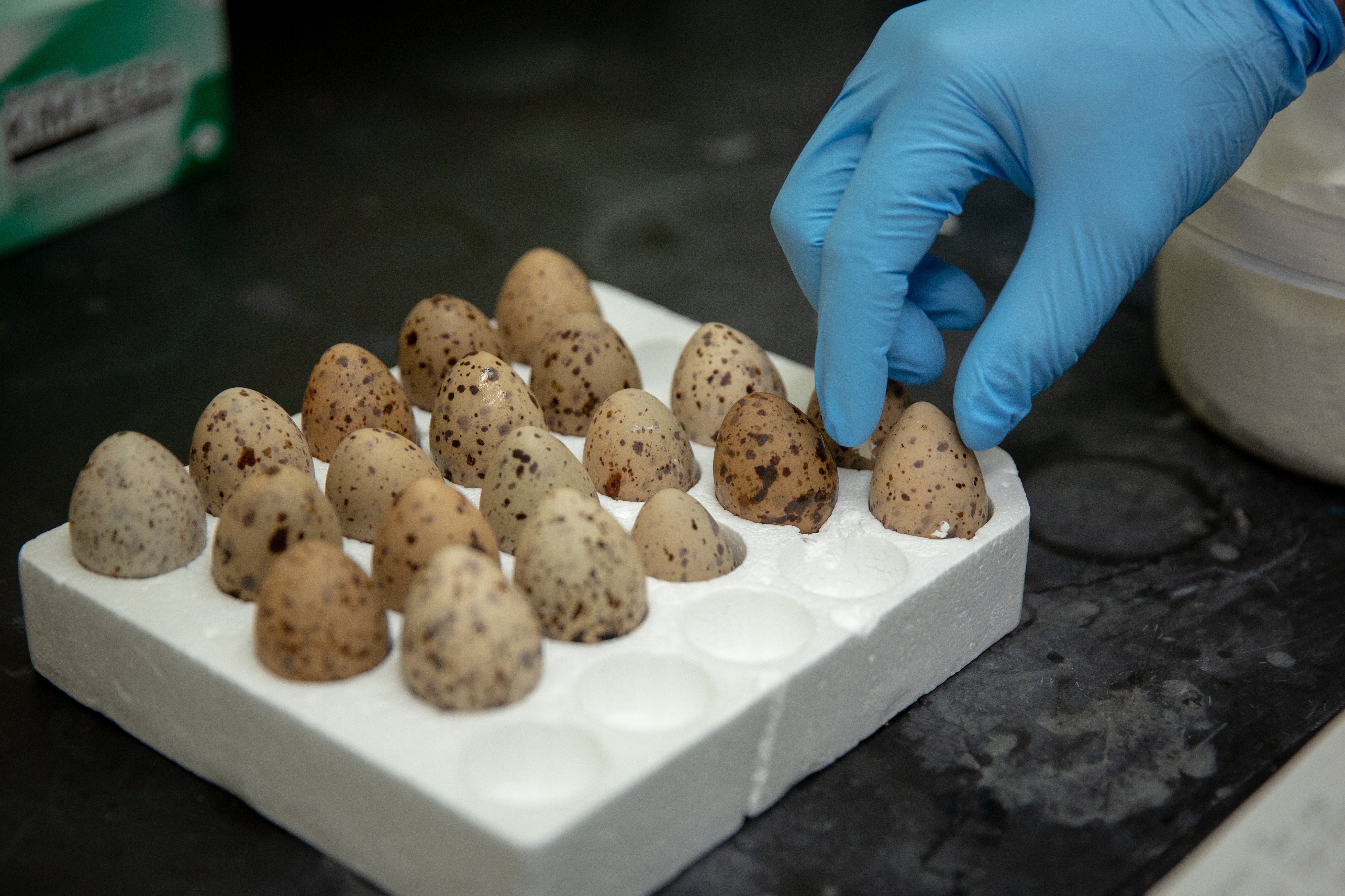 Abandoned tern eggs collected in Western New York by the New York State Department of Environmental Conservation. Though a 2020 study published in Environment International focuses on common tern chicks, juveniles and adults, University at Buffalo and SUNY Buffalo State scientists have begun work on a study examining the levels of pollutants in common terns' and other wild aquatic birds’ eggs. Credit: Meredith Forrest Kulwicki / University at Buffalo