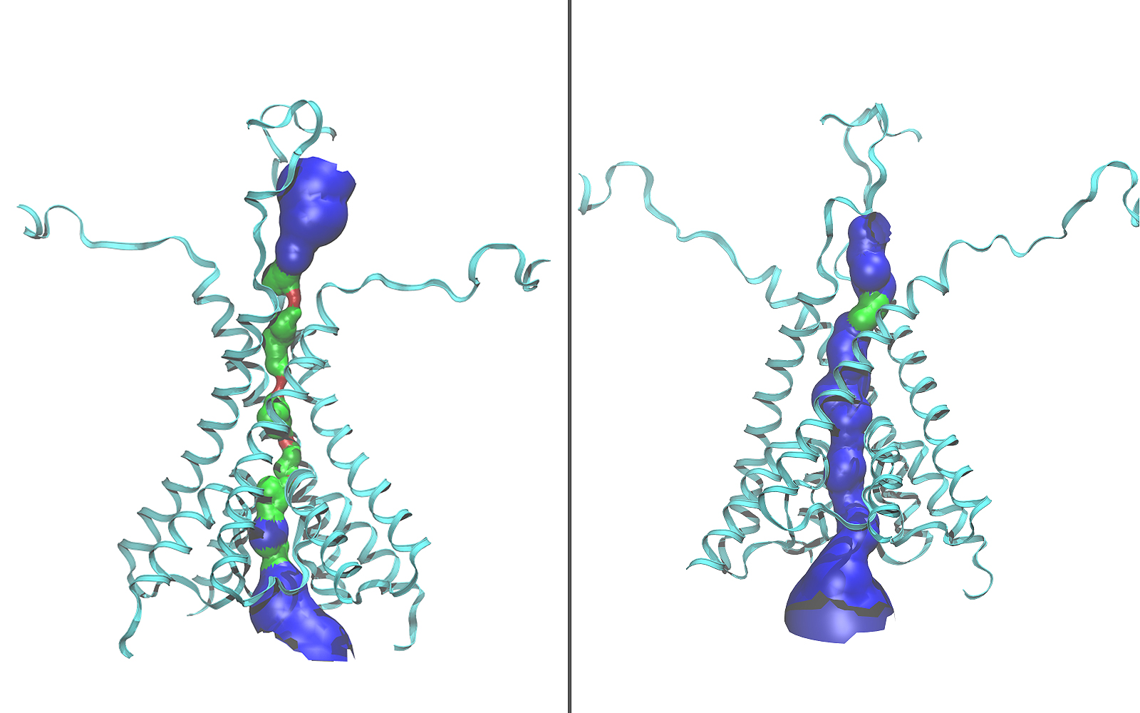 “This simulated open structure is the first clue to how the internal organization of these receptors may change when they open,” said Popescu.