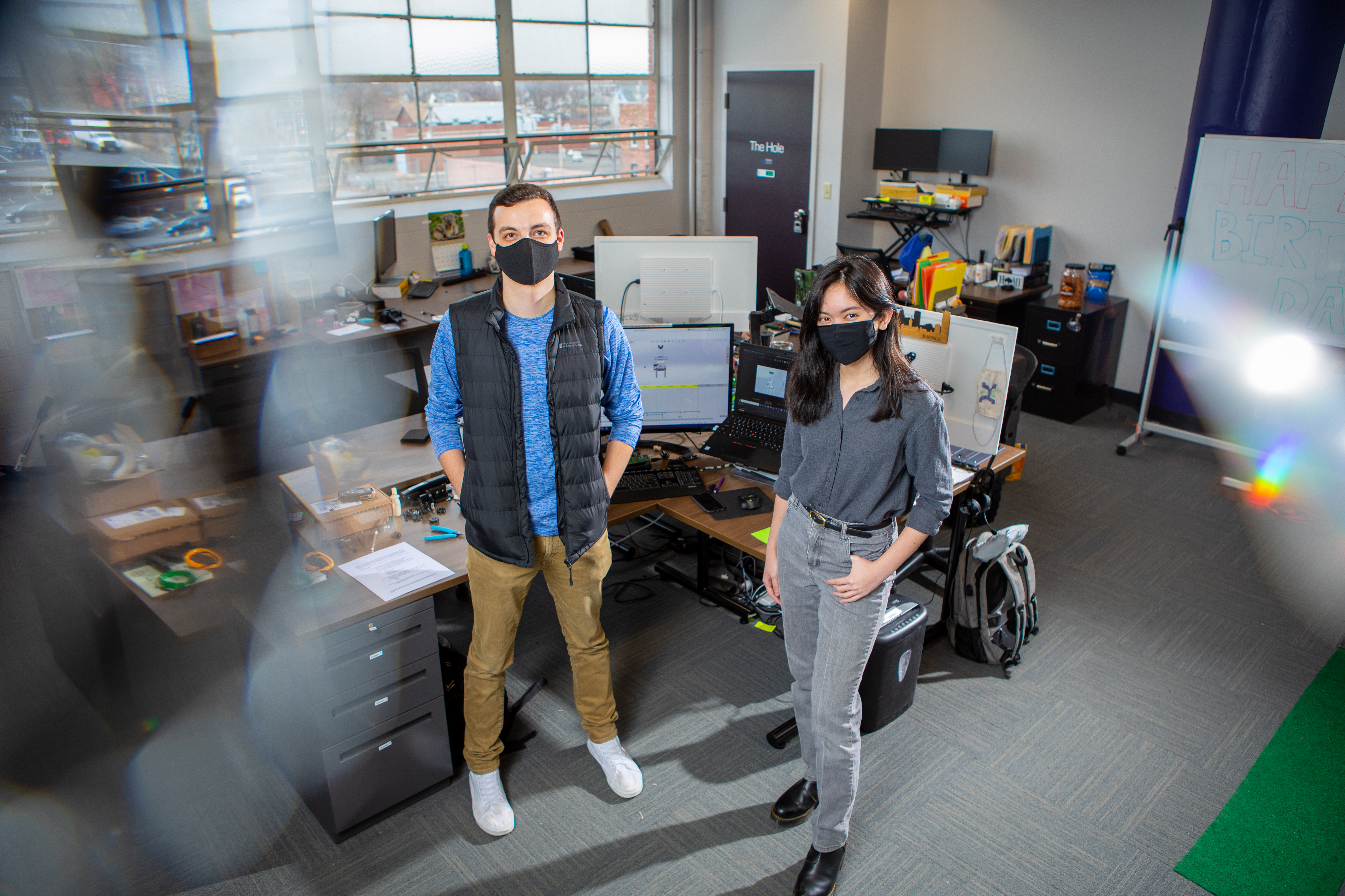In addition to Borden, Navarro and Olewnik, partners on the project include UB computer science and engineering students Ahana Bhattacharya, Vaibhav Prakash Chhajed and Jake Ryan; UB aerospace engineering students Amrith Mariappan and William Kandler, who is also studying mechanical engineering; UB mechanical engineering students Becky Paul-Odionhin and David Ferris; Ram Batta, lead venture coach with Blackstone LaunchPad & Techstars and a UB biomedical engineering student; and Buckmaster, Nicholas Phillips and Zachary Carey from Tresca Design.