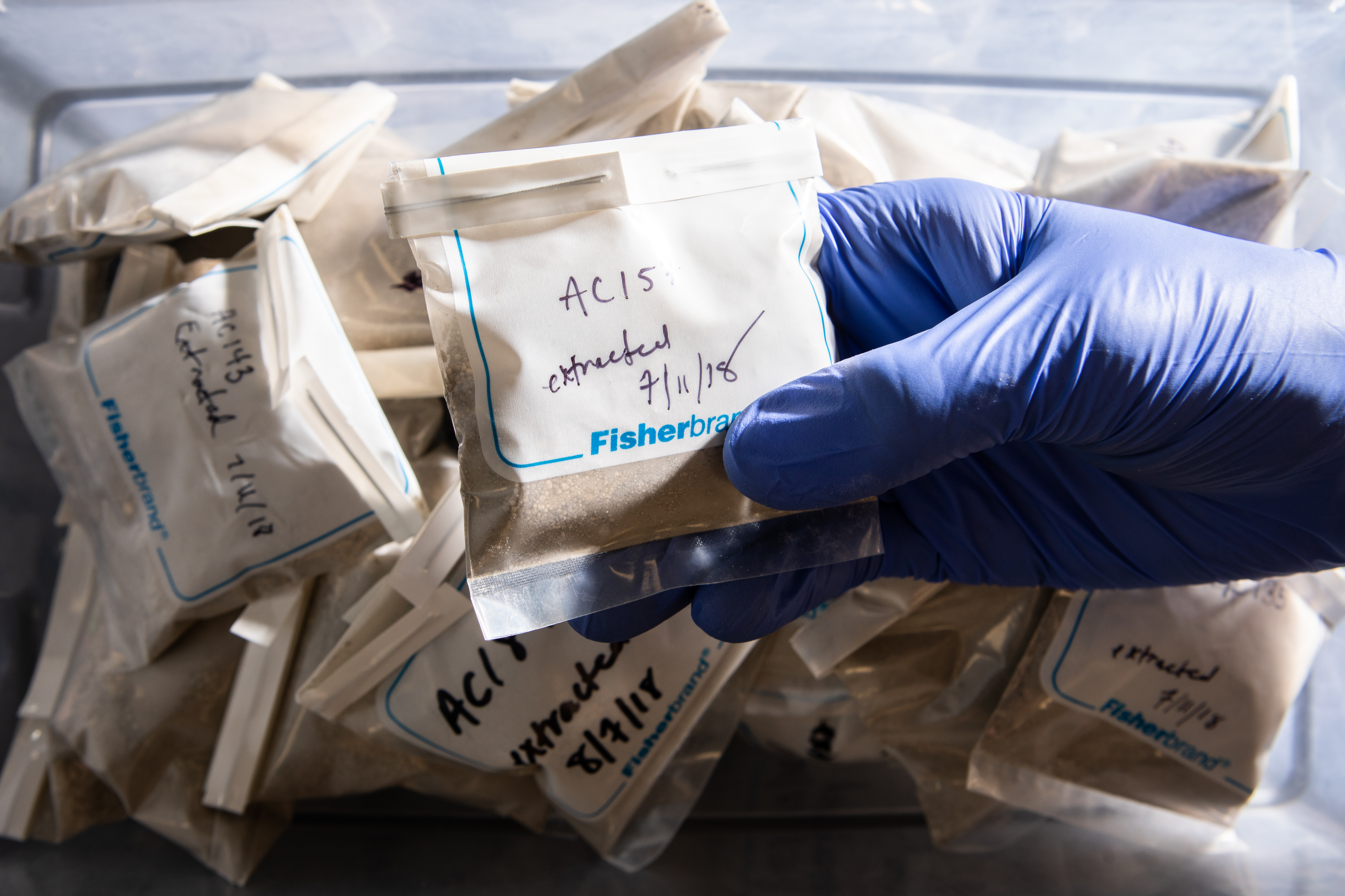 A bag containing ocean-bottom sediments after materials such as leaf wax chemicals have been extracted. Credit: Douglas Levere / University at Buffalo. Download additional photos.