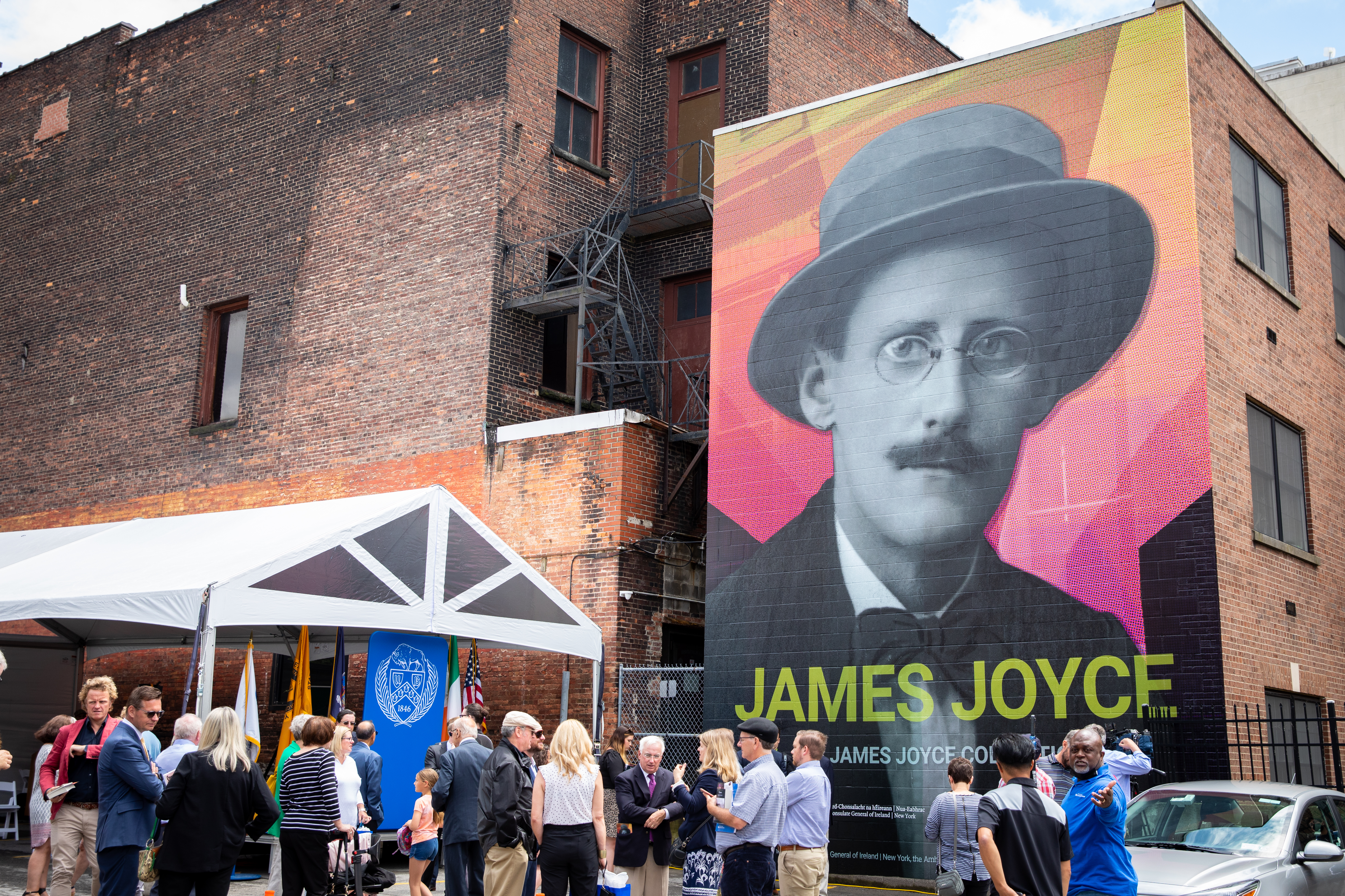 The mural is part of a broader fundraising campaign and initiative to raise awareness of the UB James Joyce Collection, the world’s largest and most comprehensive collection of manuscripts and materials by and about the famed Irish author.