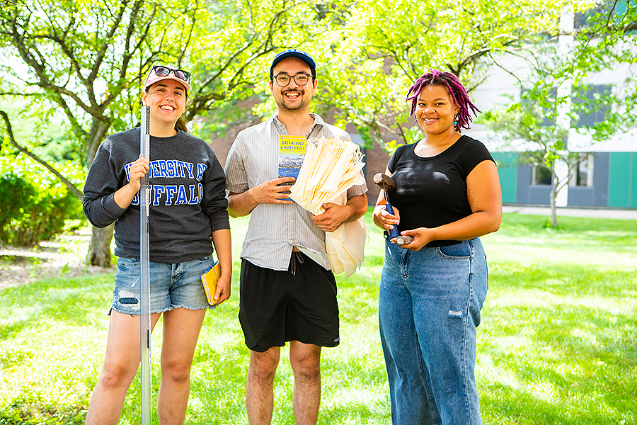 From left to right: UB researchers heading to Greenland this year include PhD students Karlee Prince and Caleb Walcott, and master’s student Liza Wilson. Walcott is going as part of the GreenDrill team, and Prince and Wilson for another research project. All are members of Jason Briner’s lab in the Department of Geology. Credit: Douglas Levere / University at Buffalo